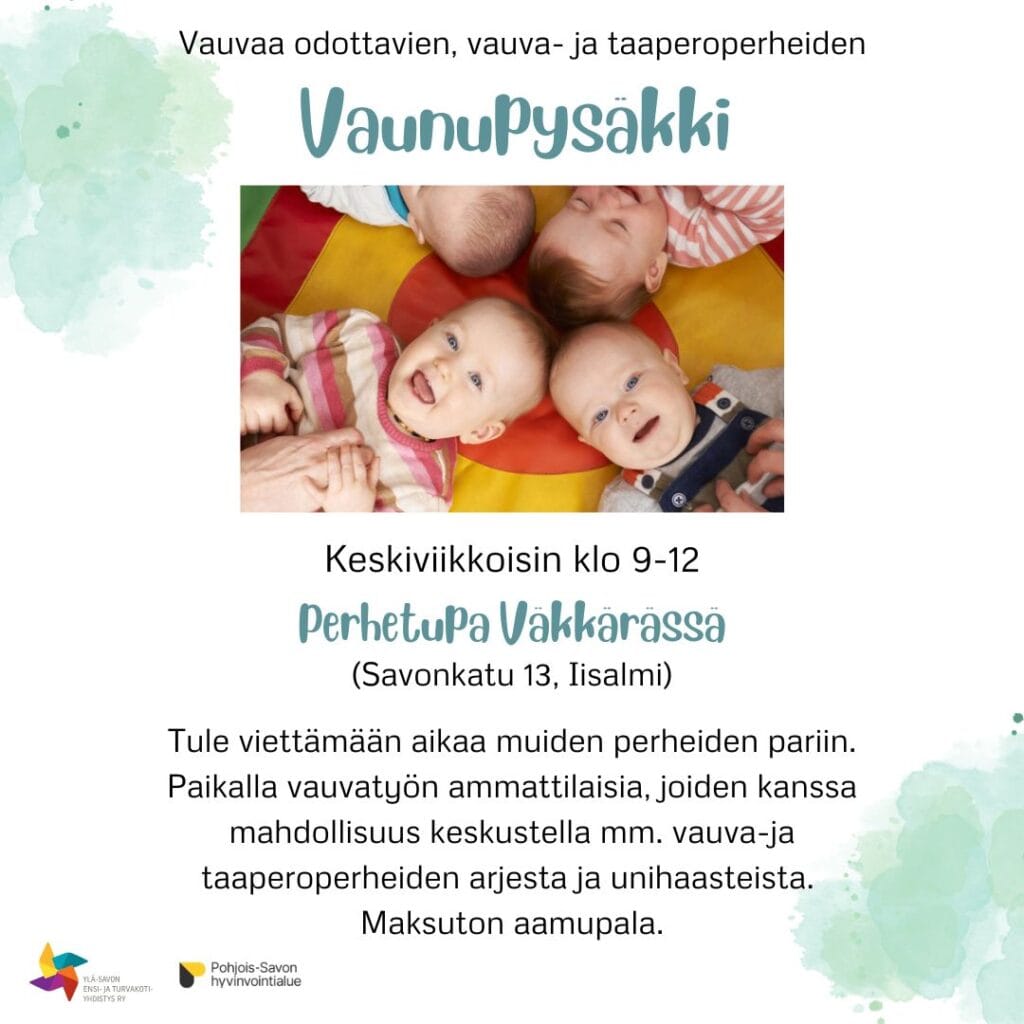Vaunupysäkki keskiviikkoisin klo 9-12 Perhetupa Väkkärässä (Savonkatu 13, Iisalmi). Maksuton aamupala perheille tarjolla.