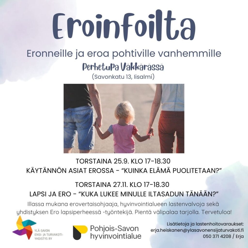 Eroinfoillassa saat tietoa erosta ja siihen liittyvistä sovittavista asioista sekä tapaat muita eronneita vanhempia