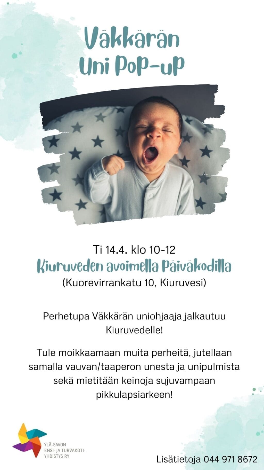 Väkkärän uniohjaaja jalkautuu Kiuruvedelle! Tule moikkaamaan muita perheitä, jutellaan samalla vauvan/taaperon unesta ja unipulmista sekä mietitään keinoja unipulmien selättämiseen.